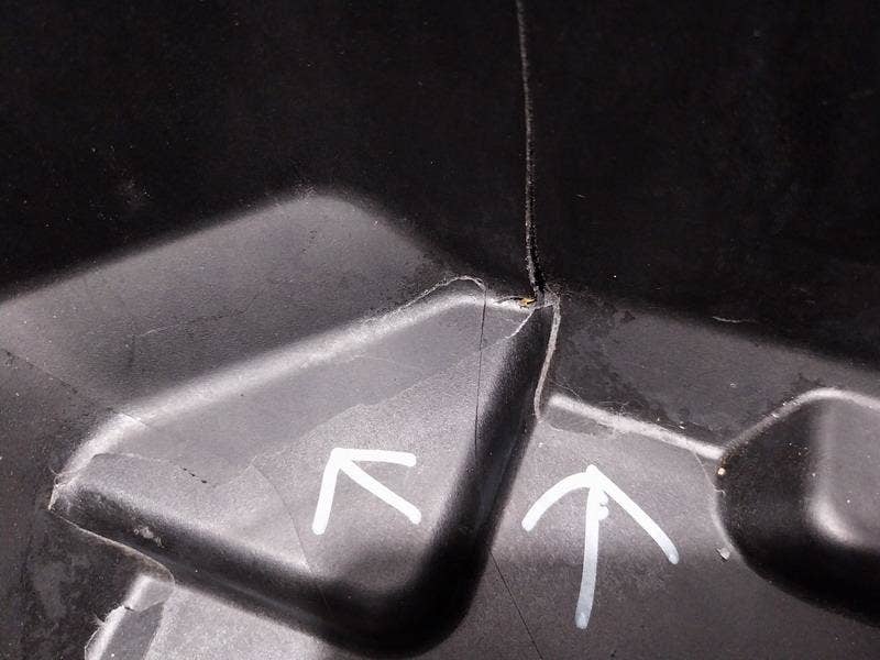 spadl z regálu v garáži na roh kufru a tam to prasklo, zvenku to není vidět, klíč není