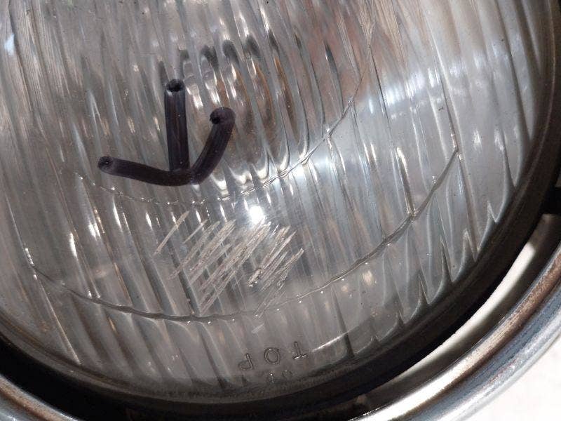 oděrka na skle, prasklina v plastu. origo yam.